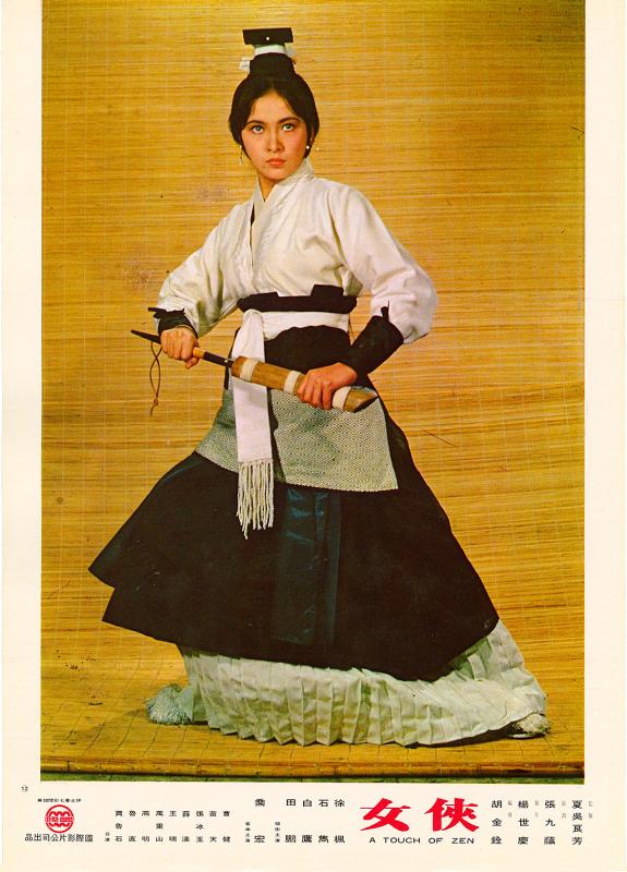 It paid off. After her first role, in Hu’s 1967 hit Dragon Inn (龍門客棧), Hsu was cast as the sword-wielding renegade lead in the 1971 A Touch of Zen (俠女).