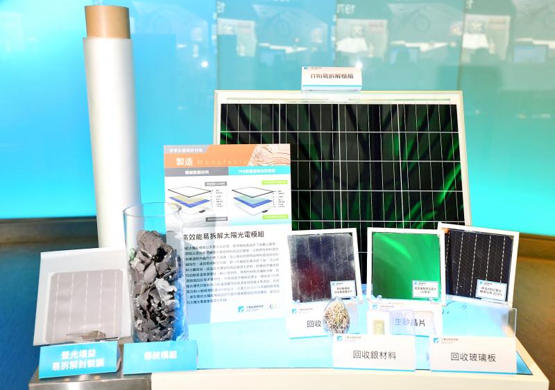 A research group led by Fu Yaw-shyan (傅耀賢), a professor in National University of Tainan’s Department of Greenergy Technology, began by using chemical decomposition to separate the various materials within each panel. This method was effective, but Fu’s team decided not to pursue it, because the solvents used are unkind to the environment.