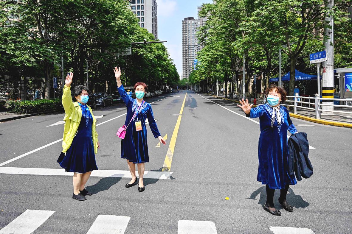 The mood was festive in the central Jing’an district on Wednesday outside one apartment compound where residents were finally permitted to step outside — for only two hours —- after 55 days indoors.