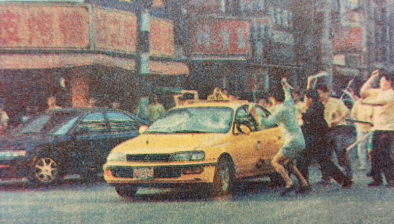 Armed with metal bats, car locks and even tear gas, the midnight battle on Aug. 17, 1995 between Chuan Ming (全民) and Beiqu (北區) taxi drivers associations lasted for over four hours at the roundabout on Tingzhou Road (汀州路) in Taipei. Scattered clashes also broke out in other areas of the capital, as well as in what is today’s New Taipei City.