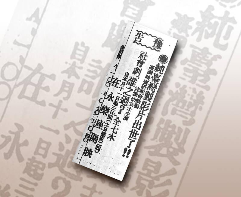 Liu’s dream came true on Sept. 11, 1925, when the association ran a tiny ad in the Taiwan Daily News (台灣日日新報) announcing, “The first purely Taiwanese-produced movie has been born!!”
