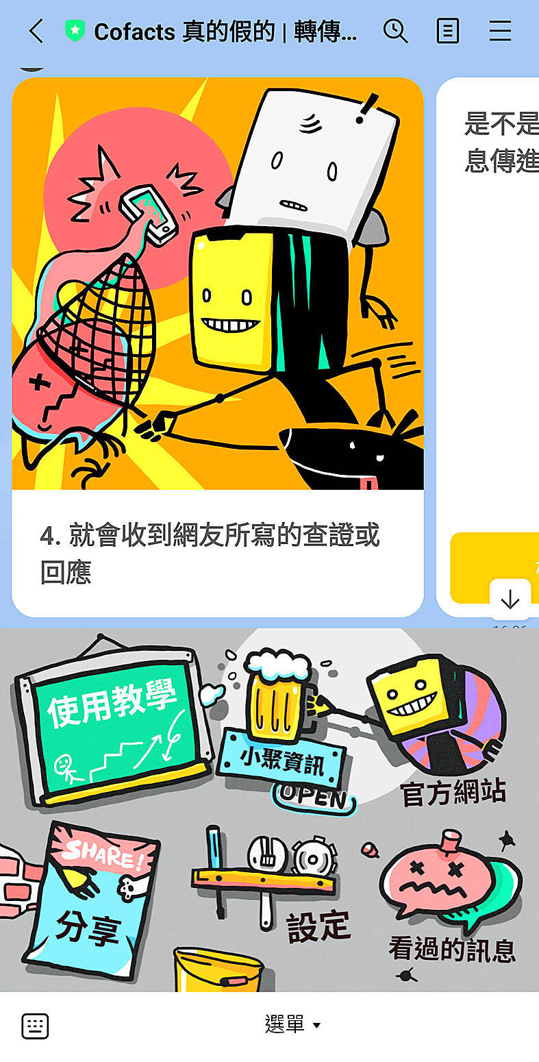 An alternative model is CoFacts, an initiative by government transparency community g0v, which encourages users to help verify, or mark as containing personal opinion, the submitted inquiries on an open-source, collaborative platform.