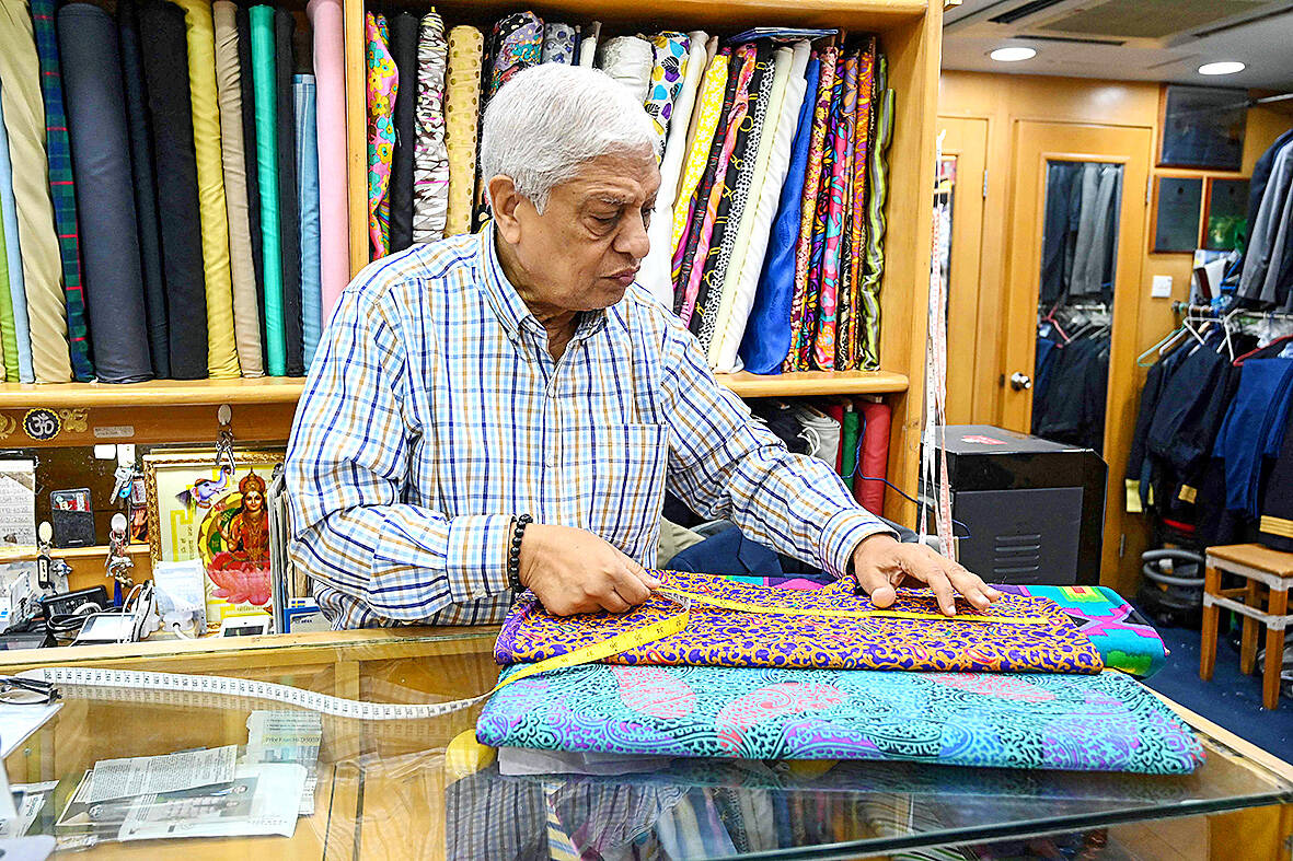 “Understand that if I did not have 60 years of cash behind me, I could not operate,” Melwani, a third-generation tailor, says as a frenetic day of video calls with customers and livestreams to showcase new designs gets underway.