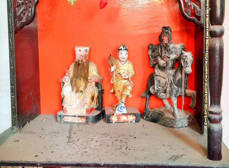 The blog mentions people purchasing houses at auction, only to find ancestor shrines or god icons inside once they take possession. In some cases, it seems, the former occupant has left those items behind hoping they can extort money from the buyer. A request to come and remove effigies or dismantle a shrine is met by a demand for cold, hard cash — sometimes as much as NT$200,000, according to Feng.