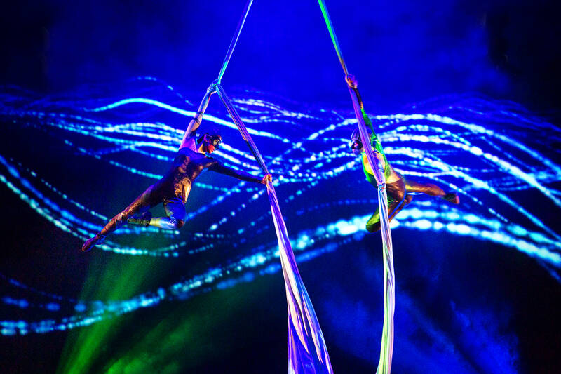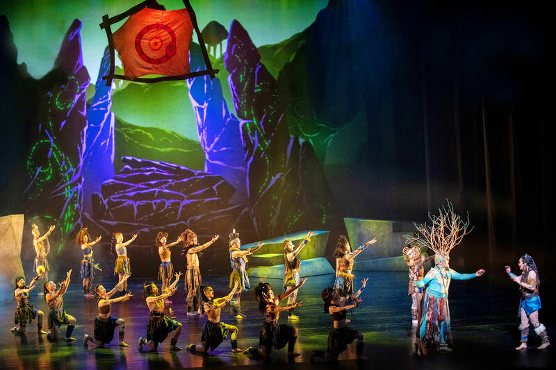 That won’t be the case for the group’s return to the National Theater next weekend. The crowd-wowing “diabolo dancers” (鈴舞者) will still be a vital part of the performance, but the child-friendly VALO Part 2: The Island (VALO 二部曲: 島嶼) will also feature singers, drummers, acrobats, special effects and colorful, fantastical costumes and backdrops. And for the first time, the show will follow a clear storyline, one that revolves around an ancient prophecy about a girl confronting darkness and bringing light back to the world.