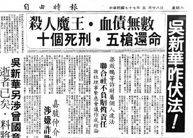 Lee Li-chuan (李莉娟) nervously chewed stick after stick of gum on her way to meet with Wu Hsin-hua (吳新華), Taiwan’s most notorious criminal during the early 1980s. She rarely chewed gum — or wore makeup — but the 32-year-old officer had to maintain the facade as the wife of Uncle Yung, a fictitious arms dealer who had successfully lured the elusive Wu out of his mountain hideout.