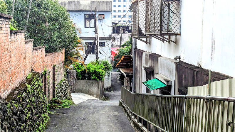 I’m looking for the Ankang Guesthouse (安康招待所), a detention center where political prisoners were housed and interrogated between 1974 and 1987. It fell into disrepair over the decades and was further damaged by flooding and vandals who allegedly made off with various artifacts, according to a Taipei Times editorial. It’s now fenced off and will open to the public in the future as a “historical site of injustice,” but the structure is still visible from Yuhe Street (裕合街).