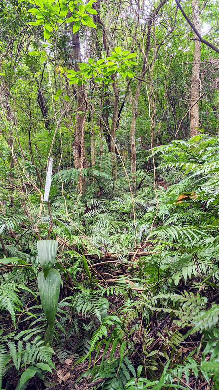 I mosey on to the Damaopu Mountain peak (294m), where the trail gets pretty wild, covered as it is with vegetation with parts that require pulling on ropes and climbing up boulders. The route gets less and less clear, but the yellow and white ribbons help guide my way to the top, a modest grassy clearing without a view. Here is where you really should turn back if you don’t have much trekking experience. Stubborn me insists on continuing on, and there’s barely a path anymore as I become completely reliant on the ribbons and ropes to identify which direction to go in.
