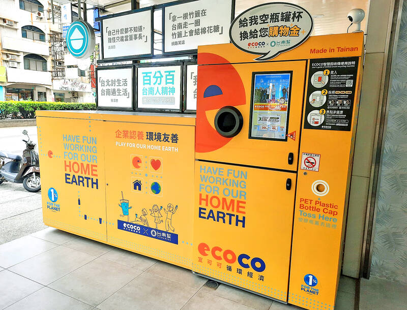 Since late 2018, a Tainan-based startup has also been rolling out machines that award shopping points in return for recyclables. Fun Lead Change Co’s ECOCO machines, which are a distinctive shade of orange, have been installed at around 90 locations in 15 of Taiwan’s 22 special municipalities, counties and cities.
