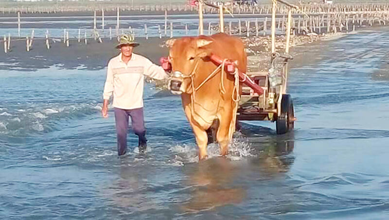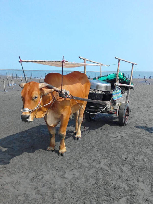 In Changhua County’s coastal village of Fangyuan (芳苑), “ocean oxen” (海牛) are trained to help harvest oysters, which is the dominant economy of the village. However, in recent years their numbers have decreased significantly.