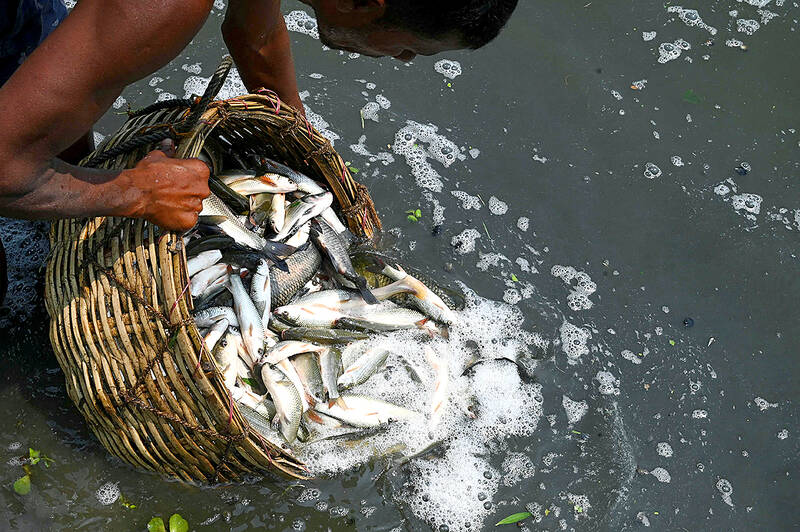 Around the creek, wooden boats and loinclothed fishermen wade through sludgy waters surrounded by foundries, thermal power plants and ship yards.