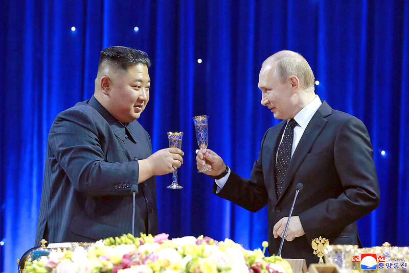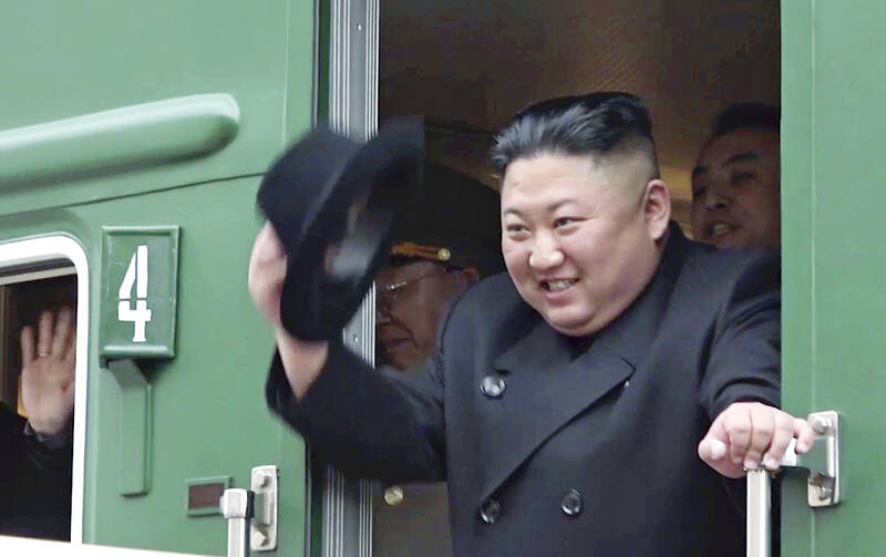 While Kim has used planes more frequently than his famously flight-averse father, he has also used his family’s armored train for his previous meetings with Putin, Chinese President Xi Jinping (習近平), and then-US President Donald Trump in 2018 and 2019, reviving an old symbol that has long been part of the Kim dynasty’s lore.
