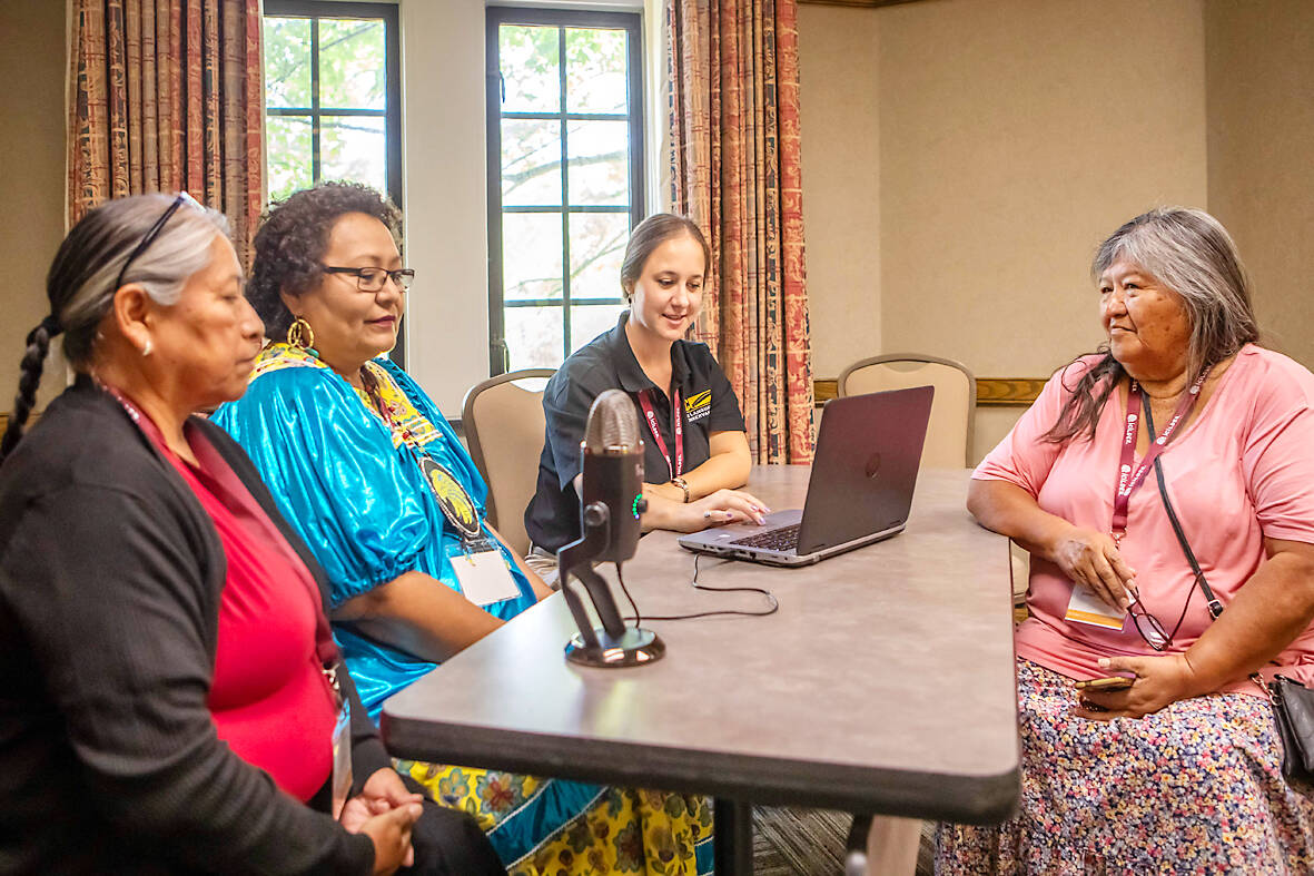 The women are working with Rapid Word Collection (RWC) software, which uses an algorithm to search Apache text and audio databases for so-called forgotten words.