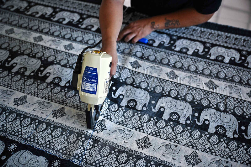 A half-hour drive away is Kingkarn “Jack” Samon’s factory, where rolls and rolls of pachyderm-inspired prints are measured, sliced and stitched.