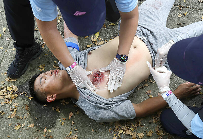 Forward Alliance instructors — serving firefighters and medical personnel — were at work on a recent November afternoon at a police department in New Taipei City, giving training on tactical emergency casualty care to officers. Taught how to use a tourniquet to stop bleeding and treating chest wounds, it seemed more suited to a war zone than an island where strict laws on ownership mean gun crime is rare.