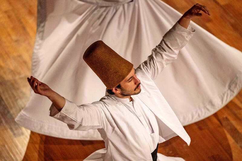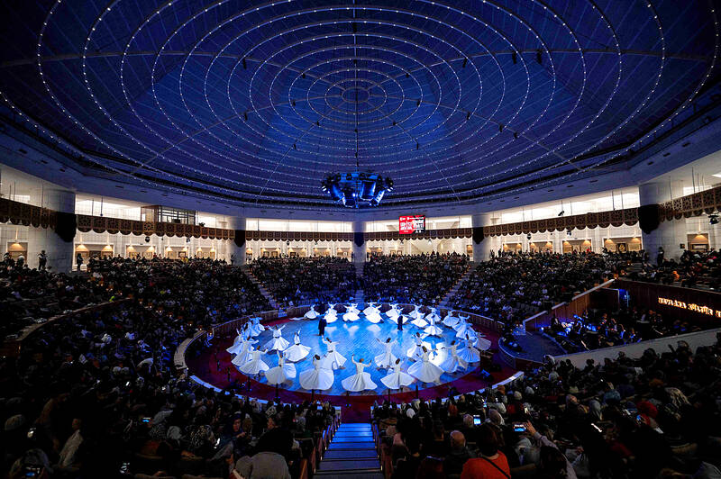 The skirts of whirling dervishes twirl in a symphony of disco colors celebrating mystic Sufi poet Rumi at a cultural center in central Turkey’s Konya.