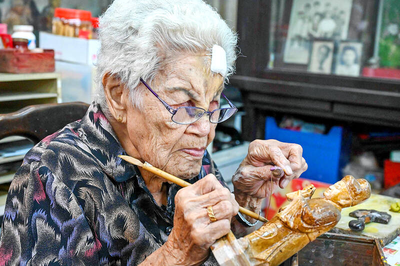 The 92-year-old great-grandmother has been making the wooden statues since her arranged marriage to effigy craftsman Ng Tian Sang at the age of 18.