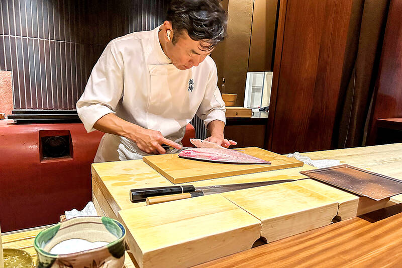 “The knife is an extension of my hand,” the chef explained, proudly wielding the elongated blade specially made by blacksmith Minamoto Izumimasa.