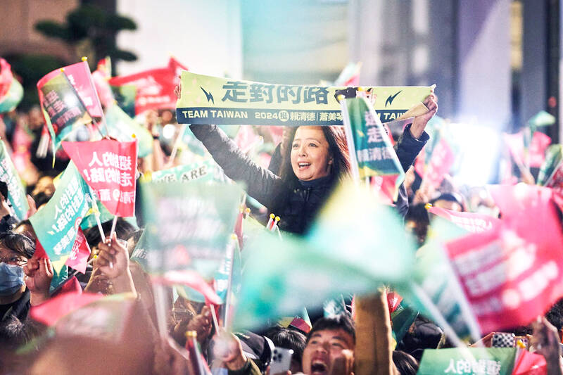 In Taipei it was hard to push through the heaving Democratic Progress party (DPP) crowd. Confetti rained down as it was announced that William Lai (賴清德) and his running mate Hsiao Bi-khim (蕭美琴) had won.