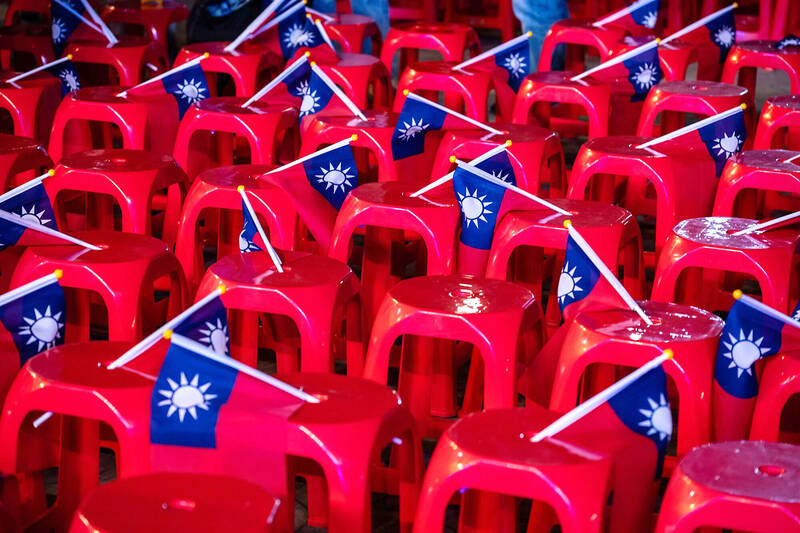 The opposition Chinese Nationalist Party (KMT) event in New Taipei city was sad from the start. Rows and rows of empty red stools, a small national flag hopefully placed on each one, sat empty. Journalists paced the ground, outnumbering the interviewees they were searching for.