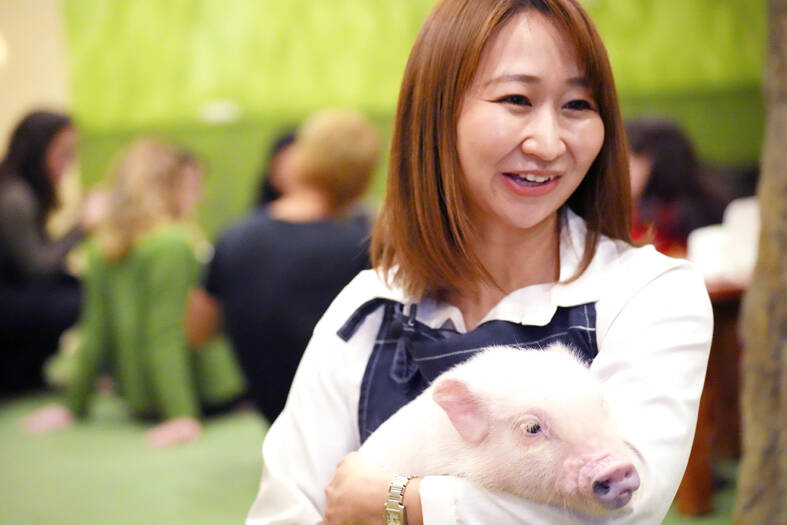 The Mipig Cafe in fashionable Harajuku is among 10 such pig cafes the operator has opened around Japan. The first one opened in Tokyo in 2019. Two more are in the works for later this year.