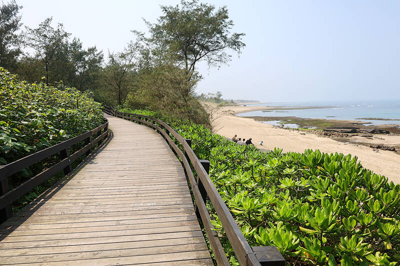 The next dedicated bikeway –– and my humble destination –– is located a further eight kilometers up the road in Sanjhih District (三芝). It bridges two tourist beaches Chienshuiwan (淺水灣) and Baishawan (白沙灣) hence the name, Shuangwan Bike Path (雙灣) meaning “Double Bay.”