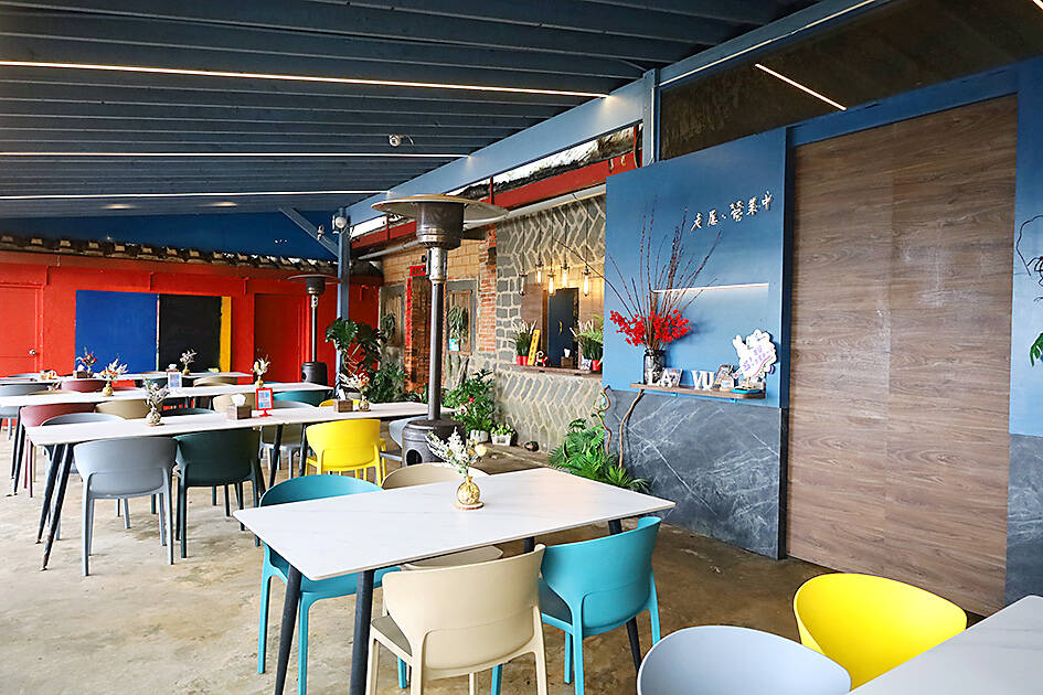 A hill path leads to Hi La Vu Opening (嗨!老屋營業中) a somewhat eccentrically branded, if colorful restaurant, which affords diners unrivalled views of the harbor.