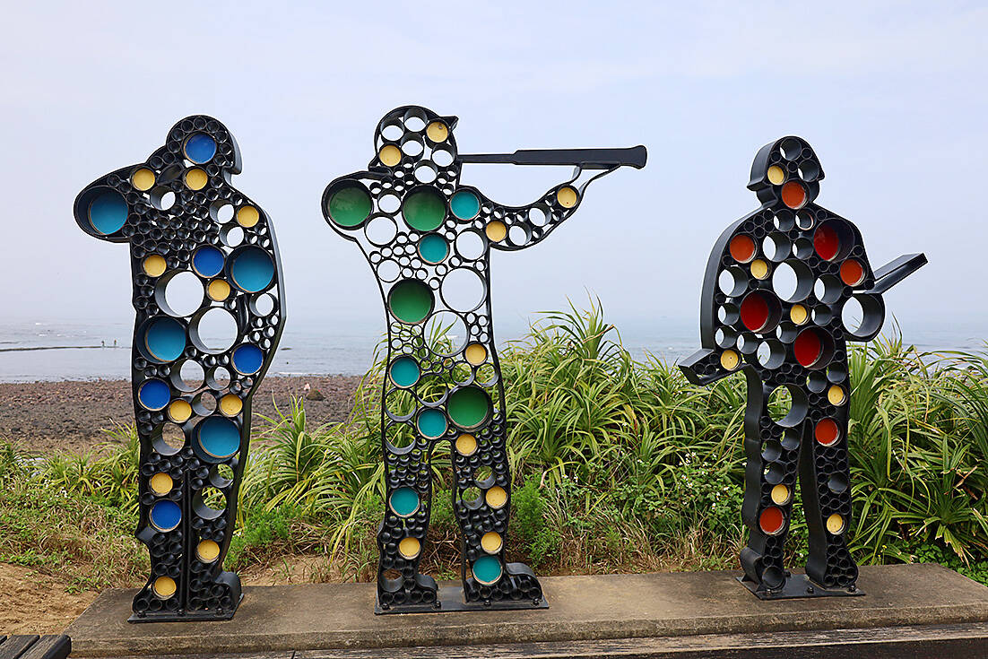 Inland, there’s a cluster of concrete towers looking out over the Taiwan Strait like stone sentinels. Across the road, a shabby row of restaurants advertising “pizza” and “seafood” block Chienshuiwan’s seaside park from view of the highway.
