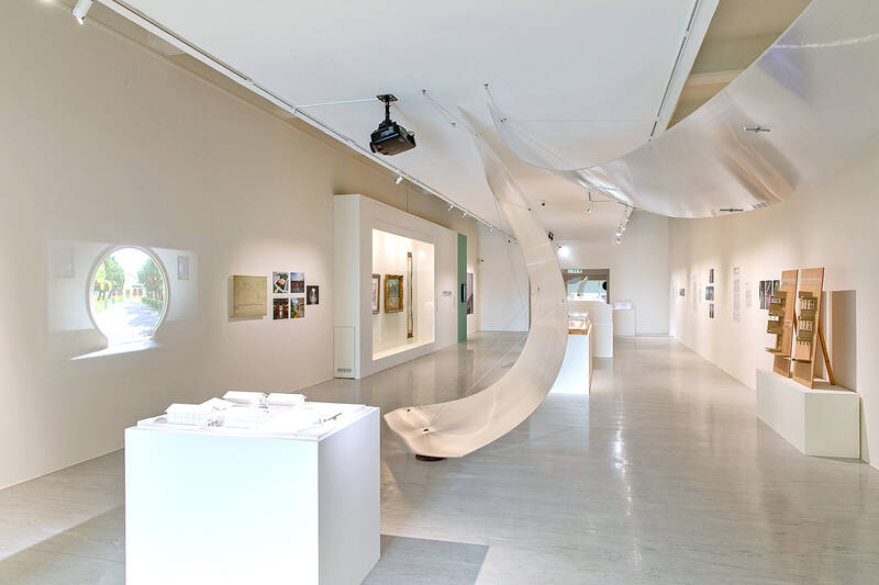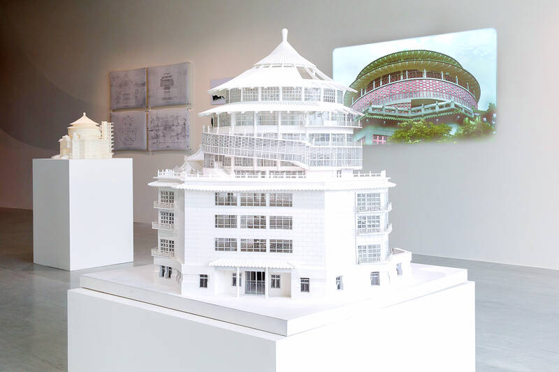Though the buildings displayed through photographs, blueprints, artist renderings and models are classed as “Taiwanese,” they were actually designed by a generation of Mainlander architects who came over with Chiang Kai-shek (蔣介石) and his retreating Chinese Nationalist Party (KMT) armies in the late 1940s and early 1950s. Just as with the bureaucracy of Taiwan’s Republic of China (ROC) government nearly all of the architects and urban planners were born in China.