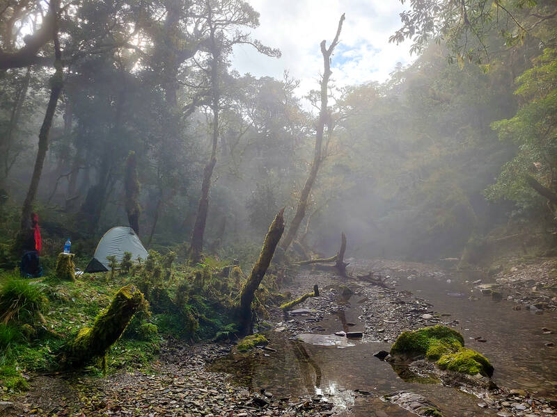 At 2,000 meters of elevation, the forest is frequently shrouded in cloud. This cloud condenses in the tree canopy and the resulting fog drip keeps the forest saturated, even without rain. This can make hiking less comfortable, but the moisture keeps the forest lush, with an abundance of ferns on the ground, and mosses and lichens hanging from the trees. For many, these rich greens are part of the appeal of mid-elevation hiking. With two beautiful lakes steeped in legend added to the mix, and the prospect of getting away from civilization for a week, the Twin Ghost Lakes route holds an irresistible draw for many hikers. What’s more, these lakes are the two largest in Taiwan above 2000 meters.
