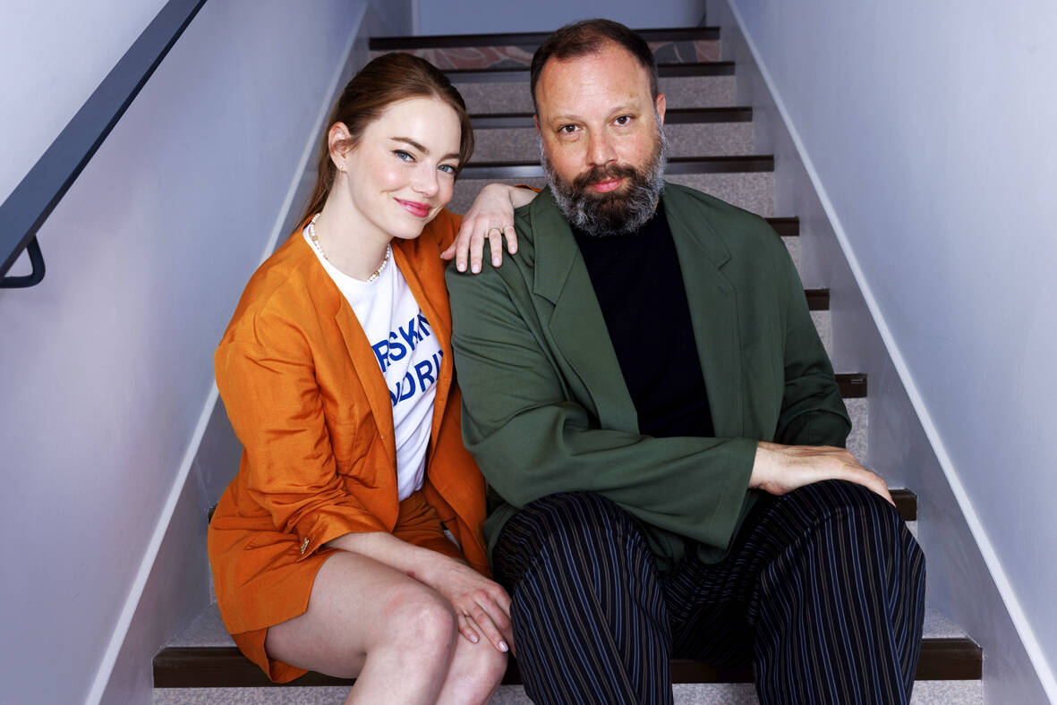 “We have a great relationship,” begins Lanthimos. ‘“We just love working together,” adds Stone. “It was cool to do a modern-day piece.” “Going back to some of the early stuff,” says Lanthimos. “A throwback,” says Stone. “Our relationship has evolved over time,” Lanthimos adds.