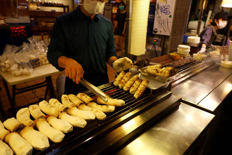 Another good money-saving option is to frequent one of Taiwan’s celebrated night markets. While these bustling boroughs might be scented with aroma of sizzling squid, there’s plenty to satisfy a hungry herbivore. In Shihlin Night Market (士林夜市), Taipei’s largest, a long line forms each night outside Barbecued King Oyster Mushrooms (燒烤杏鮑菇) with customers eager to snack on nutritional fungi marinated in a choice of flavors. The market also has barbequed corn stalls and cold noodle vendors that advertise vegetarian-options on request.