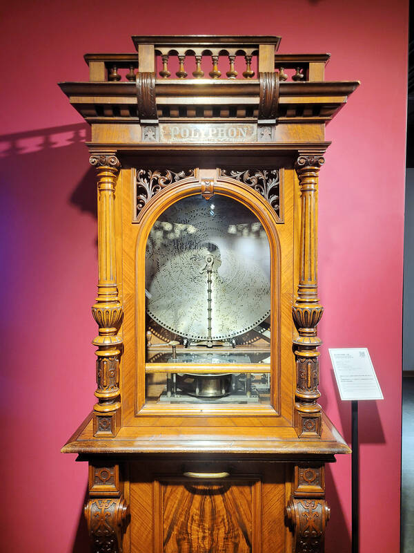 As the five-pfennig German coin from 1910 slipped into the slot, a metal disc — hidden from view behind the painted panel of a Greek muse adorning the gorgeous mahogany cabinet — began turning. The room was suddenly filled with the clear, metallic ringing of this Polyphon music box. The song we were listening to on the second floor of a museum in downtown Tainan sounded virtually identical to the first time it rang out from this music box over a century ago in Europe.