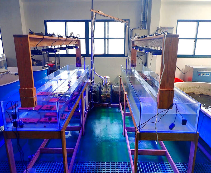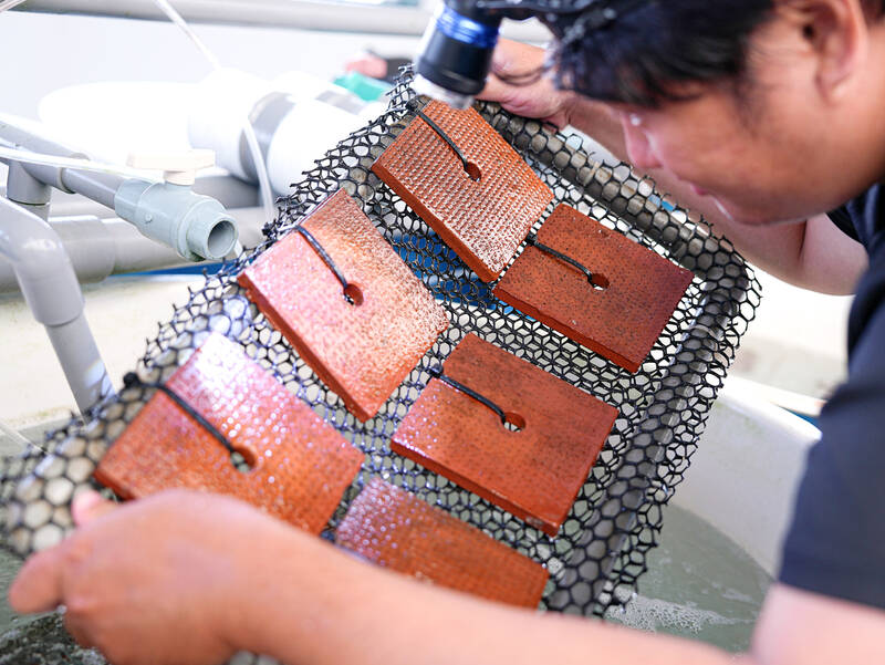 In May and June last year, researchers once again went out to gather coral spawn, which they then seeded on brick tiles and cultured in the laboratory at Penghu Fisheries Research Center.