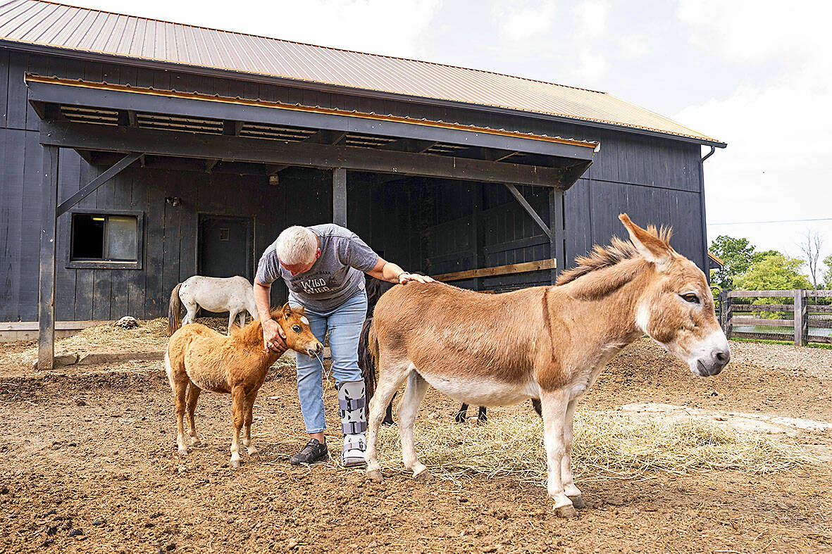Lisa Moad, who is the owner of Seven Oaks Farm in Hamilton, Ohio and has 13 miniature horses and three regular size horses, operates a therapy farm for older people and others. She also used to take the miniature horses to local nursing homes and hospitals. But since the pandemic, she has spent most of her timing conducting online training for those looking to embrace the same mission.