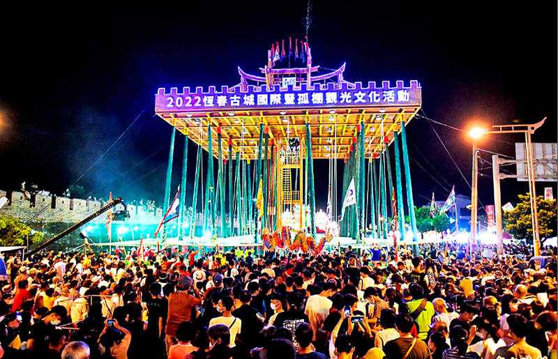 After climbing back up onto the wall on the other side of the road and continuing counterclockwise, you will pass by a high platform with 36 poles underneath it. This is where the annual “ghost grappling” (搶孤) festival takes place, during which teams form human towers and try to climb up heavily greased poles to a platform above. This year’s competition is set to take place this weekend, with the festivities spanning from today to Sunday, and the main event taking place Sunday evening.