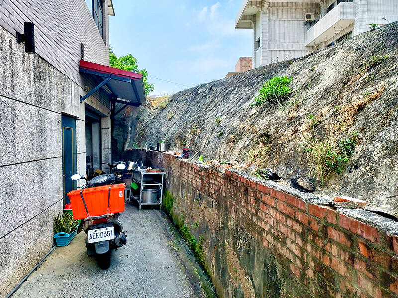 Standing in front of the Hengchun bus station, the original South Gate is visible at the end of Nanmen Road (南門路, literally “South Gate Road”) nearly straight ahead. This is the most ornate of the old city gates and a fitting place to begin the walk. For over a century, this has been the gateway to Kenting (墾丁). At one point, a rail line even ran through the gate down to Nanwan (南灣). Nowadays, vehicle traffic heading to Kenting still leaves the city on this same road, but now passes around the gate in a roundabout. After taking a few moments to admire the reconstructed tower atop the gate, start your tour of the wall itself by turning east along Lane 14, Nanmen Road.