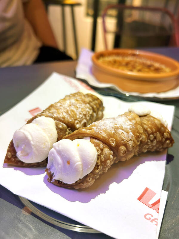 If that wasn’t quite enough carbs for one day, we follow the crowd and finish up with two house-made Sicilian cannoli (NT$150). Lightly fried cinnamon dough filled with lemony ricotta cream — it crackles with each bite. Our Catalana cream (NT$150), a shallower, lighter creme brulee still with that signature glassy top, delivers that perfect caramelized crunch.