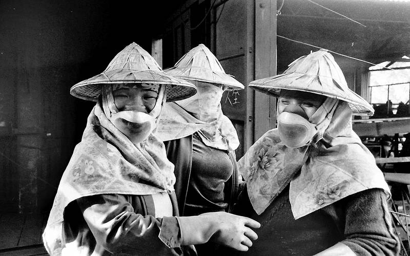 Jingtong’s Yang Kui-hsin (楊桂馨) story is typical of those times — her father began working in the mines at eight years old, developed pneumoconiosis by 29 and died at 42. Her mother, great aunt, aunts and sisters all helped process coal to keep the family afloat. She first began working at the mines at the age of 15. Her mother was in charge of carrying heavy pipes, which eventually crushed her spine, leaving her with a permanently hunched back.