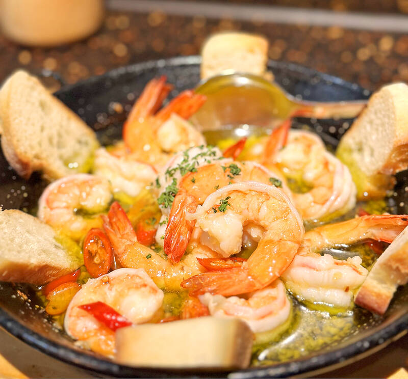 The signature here, that Lorenzo implores we try, are the garlic shrimp (NT$550). Served in an individual cast-iron pan, the shrimp are plump and pink, doused in rich garlic oil amplified with fresh red chili. Loaded onto the crisp toasts, it’s a yummy mouthful.