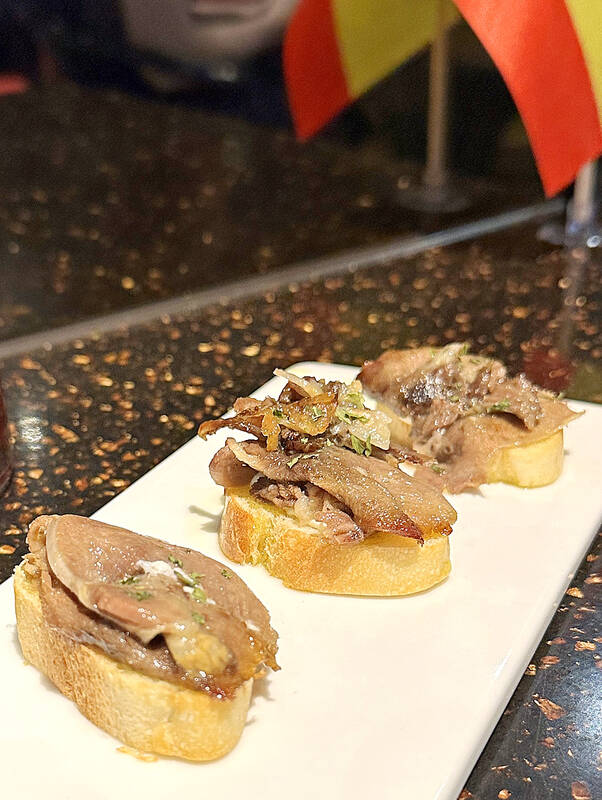 Think tapas, and desserts don’t usually come to mind, but a hugely popular dish is the Torrijas (NT$280). Bread soaked in cinnamon milk and fried, it’s the cakier, fluffier cousin of the churro, topped with vanilla ice cream. A little something sweet sees off a smorgasbord of authentic, bold Spanish cuisine — full-bodied flavors yet never too heavy.