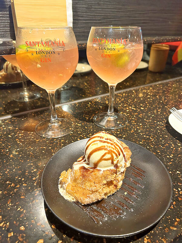 We finish the evening watching the world go by from the covered terrace, savoring the last of a fruity gin and tonic as we reacclimatize from sunny Spain to rainy Taipei.
