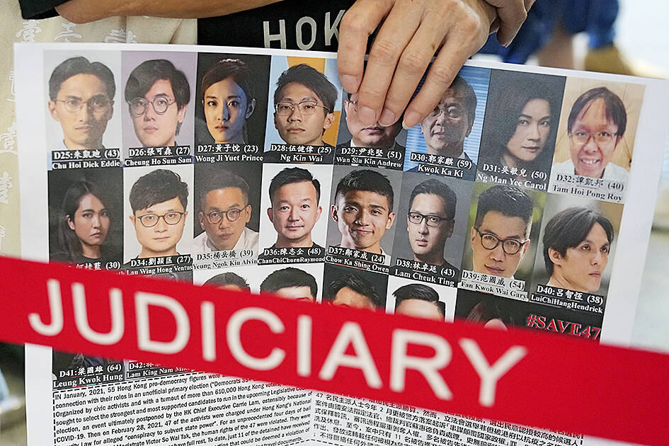 Forty-five democracy campaigners from across Hong Kong’s once-diverse political spectrum are jailed for subversion, with chief organizer Benny Tai (戴耀廷) receiving a 10-year sentence.