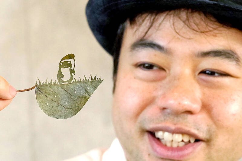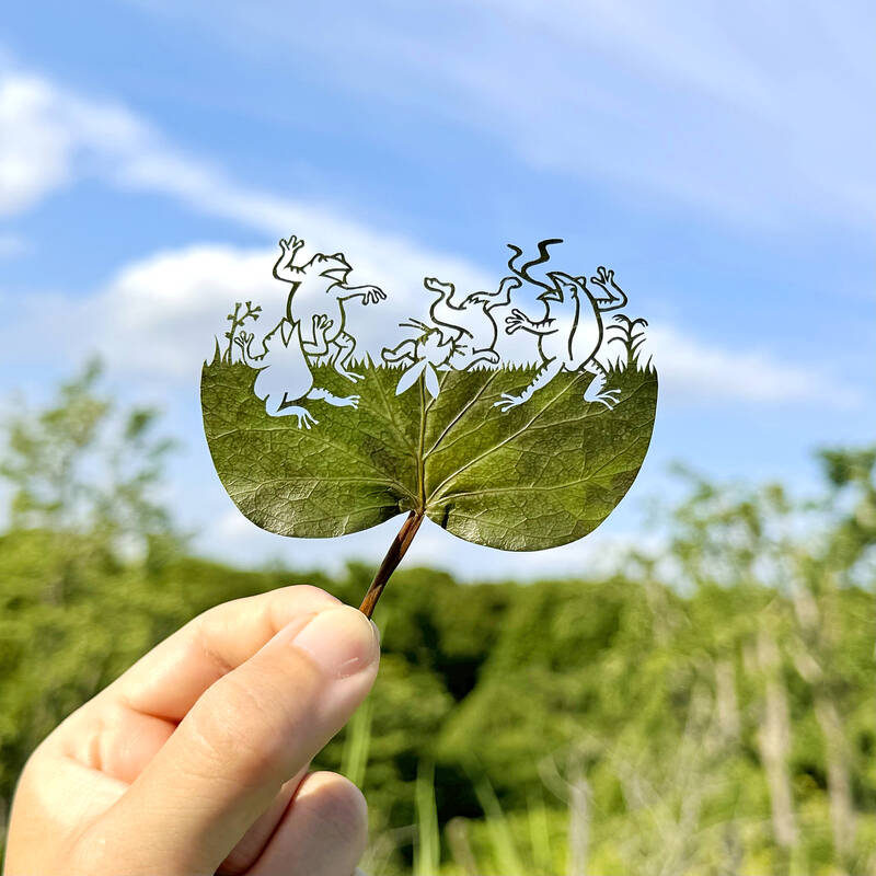 A frog holding a taro-leaf umbrella. A parade of frolicking animals. An Ukiyo-e style Mount Fuji. Giant waves. A Japanese artist who goes by the name Lito carves these delicate designs on fallen leaves, giving life back to them.