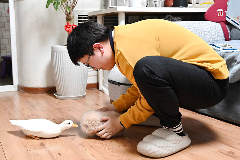 “I feel like I now have someone to share the happy times with,” Zhang said in the apartment she shares with her parents and a real pet duck.
