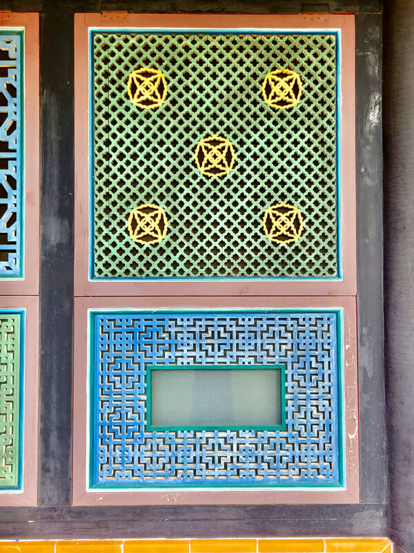 The final layer of Gong-Bao-Di has never been open to the public. Initially, it was where the unmarried Lin females were housed. Nowadays, it serves as the ancestral hall for the Wufeng Lins. The exterior, however, is worth admiring on its own, especially the intricate woodwork covering the windows in alternating blue and green patches.
