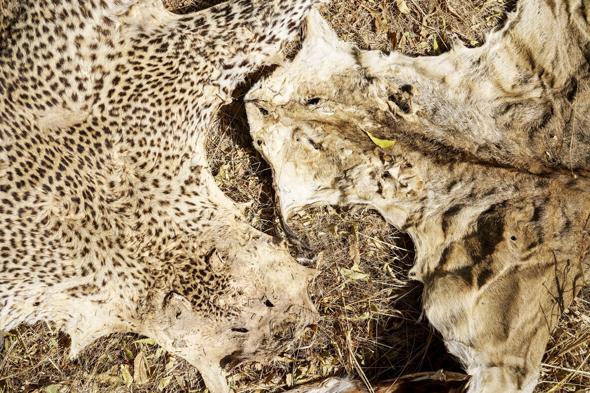 At the park’s headquarters, the scale of the challenge is clear. A storeroom overflows with confiscated skins — leopards, lions, antelopes — even a crocodile. A rusting phalanx of seized firearms hangs on the wall.