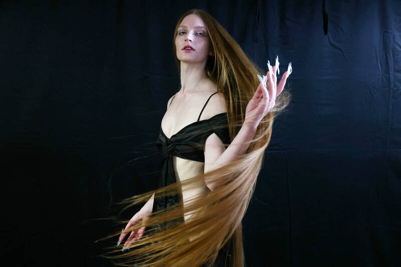 Victor Weinsanto, an up-and-coming designer from eastern France, stressed that he only used fake leather and fur in his collection in mostly neutral wintery colours of white, beige and black, with a splash of 1980s-style shade of purple.