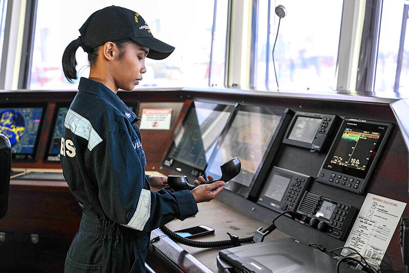 The 152-centimeter-tall radio operator is one of the Philippine Coast Guard’s 81 “Angels of the Sea,” graduates of an all-women training program aimed at defusing encounters in the critical waterway.