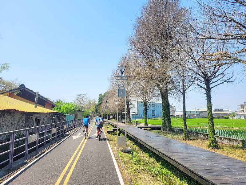 Beyond the bridge, the scenery changes again as the path passes next to rice paddies before reaching its endpoint under the No. 4 Freeway, having covered a distance of 5.8km. For those wanting to continue on the next section toward Dongshih, make a 180-degree left turn just before the freeway, at the statue of a cartoonish man standing next to a bike and giving two thumbs up.